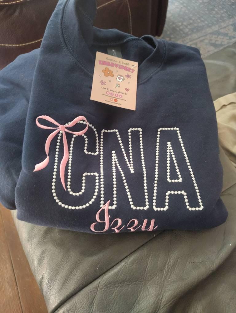 The seller is by far one of the best sellers I have ordered off of in a long time. She took the time to help me come up with a design to match what I wanted, sent the sweetest note and extras, and the sweatshirt IS AMAZING. Thank you so much!!!
